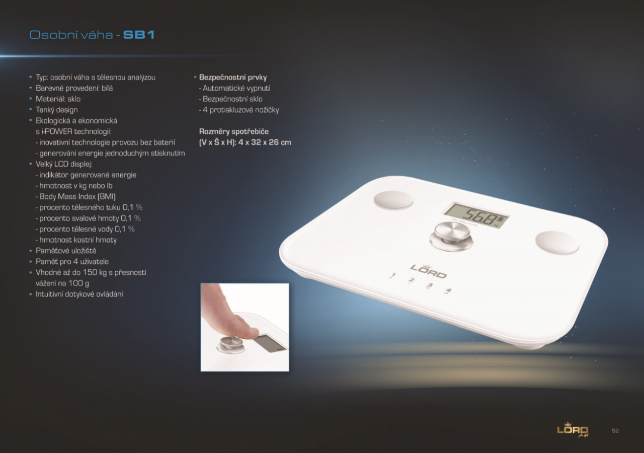Na úvod » LORD » LORD SB1 Osobní váha,150 kg, i-POWER,LCD displej,sklo