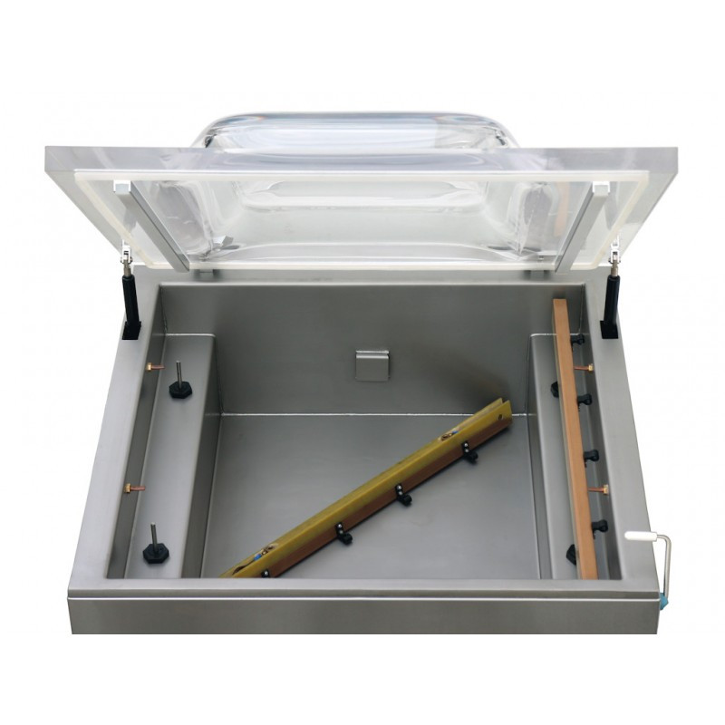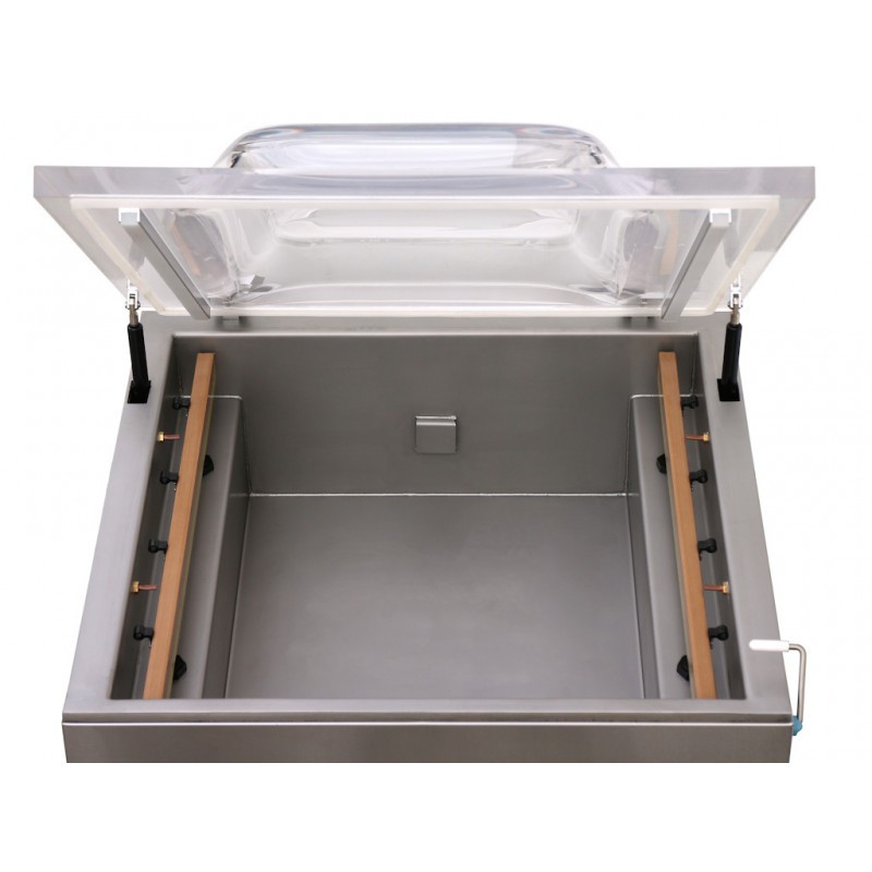 Snadno ovladatelná profesionální vakuová balička s krytem z ušlechtilé oceli. Vakuovací sáček lze naplnit inertním plynem (tato možnost může, ale nemusí být využita). Vsazené průmyslové vakuové čerpadlo má výborný výkon, což zaručuje velmi krátkou dobu balení. 2 svářecí lišty (vlevo a vpravo) pro současné odsávání dvou a více sáčků.