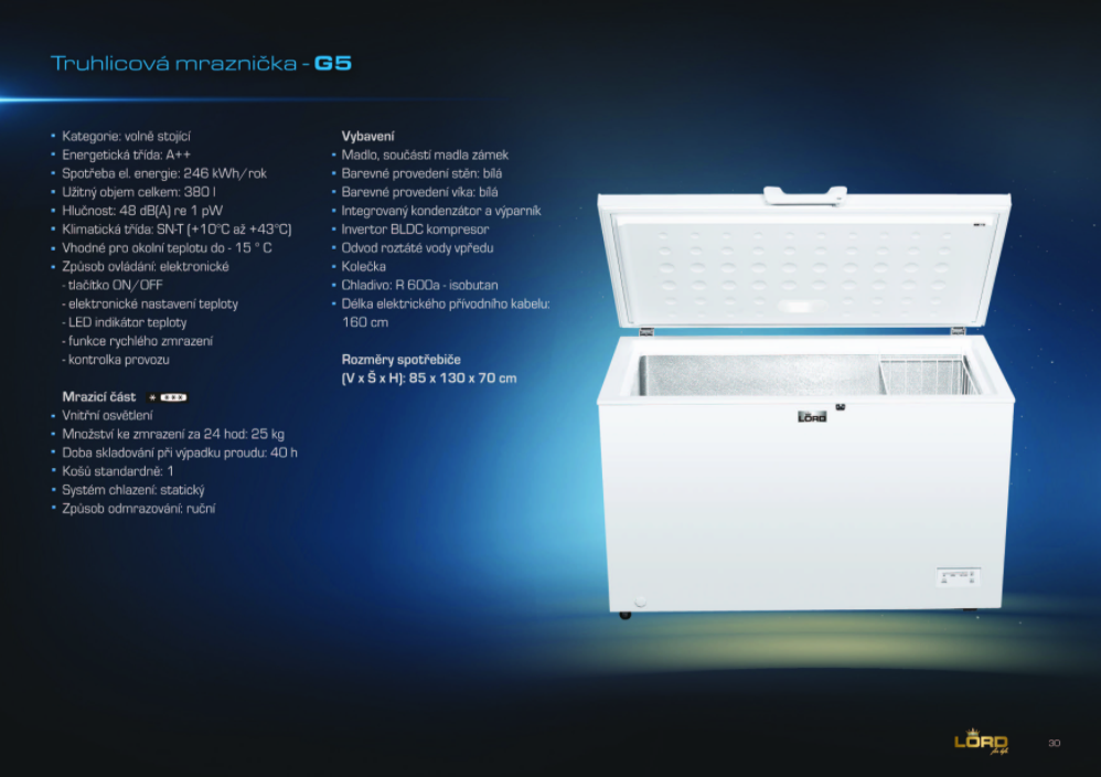 Na úvod » LORD » LORD G5 Truhlicová mraznička, 380l, E, Bílá