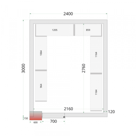 | Vnitřní rozměry (ŠxHxV) | 2160 x 2760 x 1960 mm |