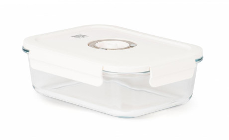 Plastové víko je vybaveno vakuovacím ventilem a praktickým nastavováním data. Budete tak vědět, kdy byly potraviny vakuovány nebo do kdy se mají spotřebovat. Ventil uprostřed víka lze jemně zmáčknout pro snadné uvolnění vakua.