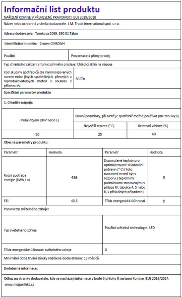 Na úvod » Gastro spotřebiče » Chladicí technika » Chladnička vitrína Crown CM50WH