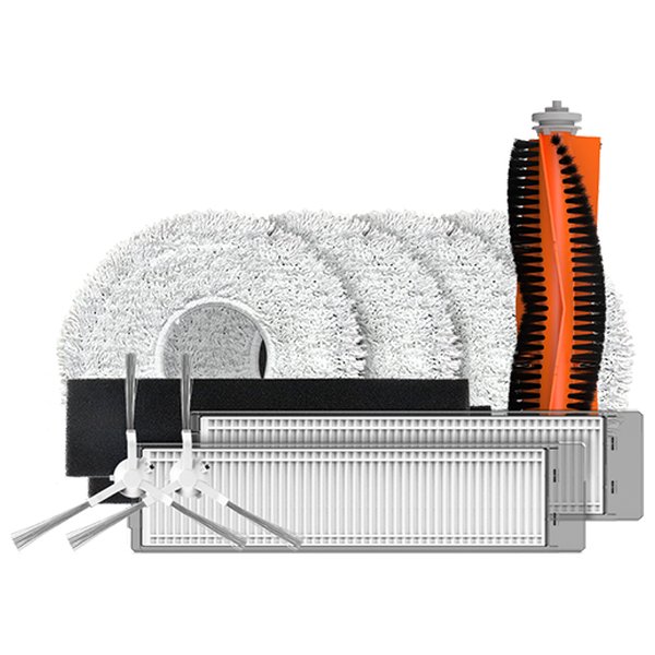 Sada příslušenství pro robotický vysavač EZVIZ RS2 udrží úklid na maximálním výkonu a zjednoduší pravidelnou údržbu. V balení najdete 1× hlavní kartáč, 2× boční kartáč, 2× utěrku na mop, 2× vysoce účinný filtr a 2× houbičkový filtr.