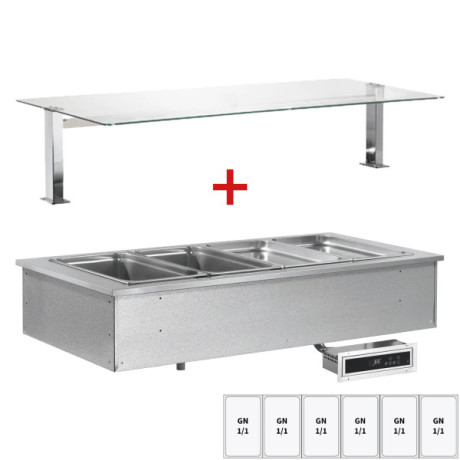 Výdejní vana chladicí, drop-in GN 6-1/1 - 200mm, nástavba LED osvětlení, rovné sklo | RM - SL GREEN+