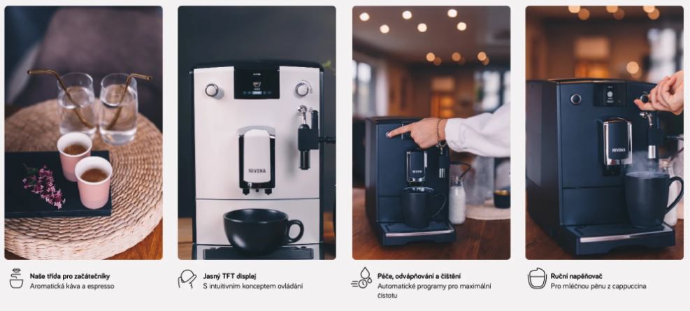 Kompaktní. Jednoduché. Rychlé. Pro jedinečný požitek z kávy. Objevte nyní nové modely řady 5. Ideální pro čerstvě namletou kávu – každé ráno. Nyní se známým konceptem ovládání NIVONA v novém 2,4'' TFT displeji. Optimální pro všechna nastavení kávy a espressa. S automatickými čistícími programy a rychlejším odvápněním. Ušetříte nejen čas. Zažijete komfort v základní třídě plnoautomatických kávovarů Nivona. Stejně jako u všech modelů s odnímatelnou spařovací jednotkou. Kompaktní požitek z kávy..