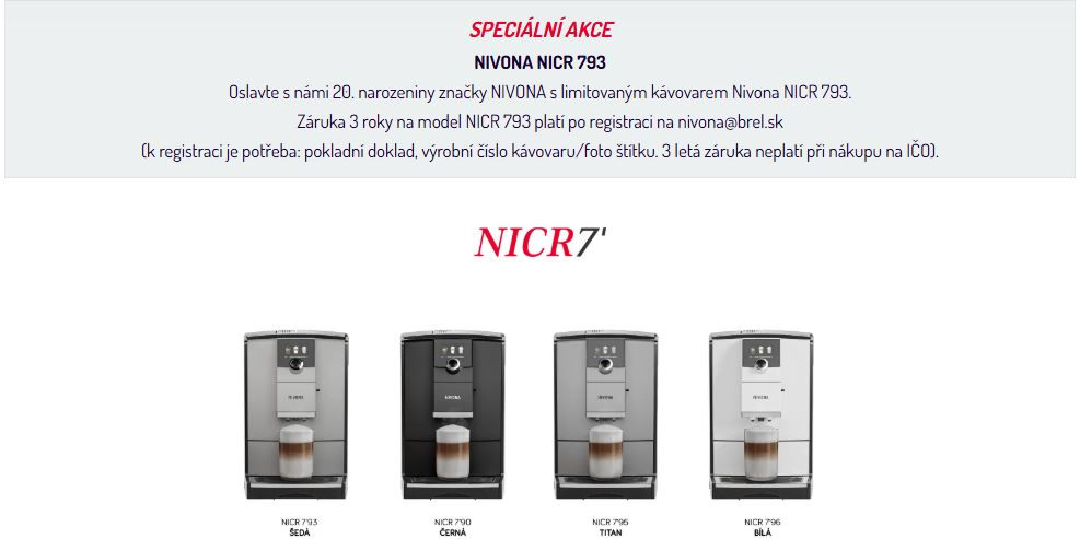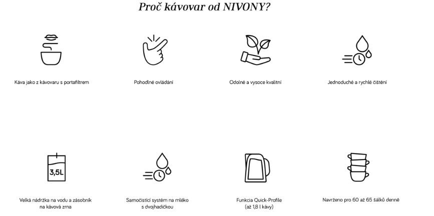 Pokud oceníte vynikající kávu a hledáte kávovar, stojíte před mnoha značkami a dodavateli. Každý, kdo přišel do kontaktu s kávovary NIVONA, jistě najde ten správný stroj pro své potřeby. Zařízení, jejichž možnosti, funkce či specifika lze jen těžko přehlédnout. NIVONA je vysoce ambiciózní značka, která se prodává pouze prostřednictvím specializovaných prodejců. Každý, kdo vlastní NIVONU, zůstává přesvědčen zákazník.