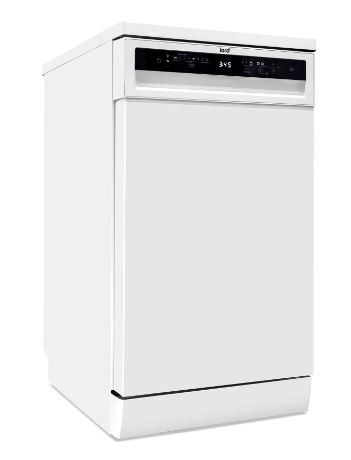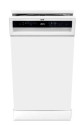 Volně stojící myčka nádobí 45cm, Spotřeba vody na cyklus: 8,0 l, Spotřeba el. energie: 51 kWh/100 cyklů, Hlučnost: 42 dB(A) re 1 pW, BLDC invertor motor, Kapacita: 10 jídelních sad ve 3 úrovních, Počet programů: 8, Automatické otevíraní dveří, Dětská pojistka, Způsob ovládání: dotykové, Nerezový mycí prostor, AquaStop, Barva: bílá