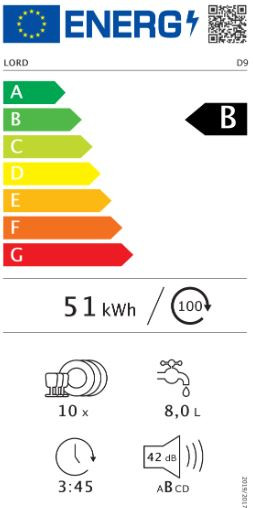 LORD D9 má nízkou hlučnost – jen 42 dB. Díky tomu se může pochlubit třídou hlučnosti B a nebude vás tak rušit.