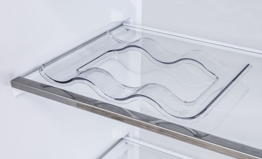 V chladicí části lze využít celkem čtyři police z bezpečnostního skla, z nichž je jedna výškově nastavitelná. Ve dveřích pak najdete tři police, které využijete na skladování nápojů a drobnějších potravin.