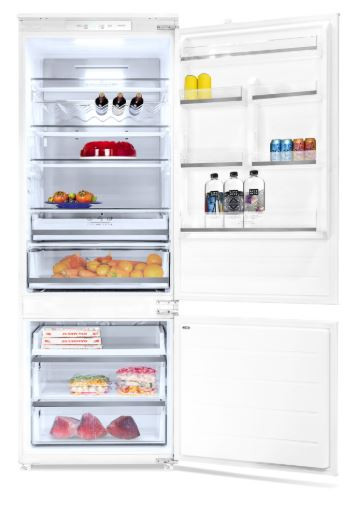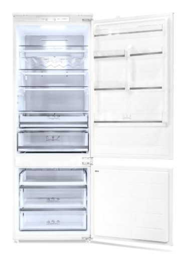 Vestavná kombinovaná chladnička, Výška: 195,3 cm, Šířka: 69 cm, Spotřeba el. energie: 211 kWh/rok, Objem celkem: 403 l, Objem chladící části: 298 l, Objem mrazící části: 105 l, Hlučnost: 29 dB(A) re 1 pW, Klimatická třída: SN-T (+10°C až +43°C), NoFrost - chladnička i mraznička