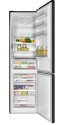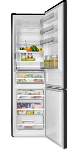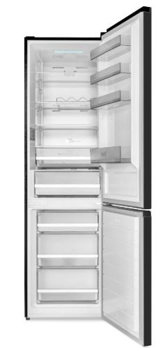 Kombinovaná chladnička, Výška: 200,5 cm, Spotřeba el. energie: 168 kWh/rok, Objem celkem: 377 l, Objem chladicí části: 264 l, Objem mrazící části: 113 l, Hlučnost: 39 dB(A) re 1 pW, Klimatická třida: SN-T (+10°C až +43°C), Automatické odmrazování NoFrost, BLDC invertor kompresor, Integrovaná madla, Barva dveří: černá, Barva boků: černá