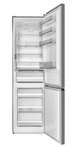 Kombinovaná chladnička, Výška: 200,5 cm, Spotřeba el. energie: 168 kWh/rok, Objem celkem: 377 l, Objem chladicí části: 264 l, Objem mrazící části: 113 l, Hlučnost: 39 dB(A) re 1 pW, Klimatická třida: SN-T (+10°C až +43°C), Automatické odmrazování NoFrost, BLDC invertor kompresor, Integrovaná madla, Barva dveří: nerezový vzhled, Barva boků: šedá