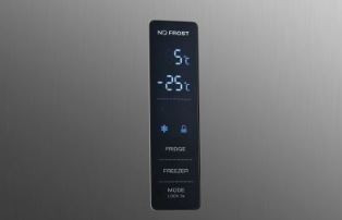 Elegantní provedení v nerezovém vzhledu vás osloví — ať už preferujete minimalistický design nebo moderní praktičnost. Dveře mají povrchovou úpravu šedý nerez. Šedé jsou také boky chladničky. V horní části dveří chladničky najdete dotykový ovládací panel, díky němuž budete mít vždy přehled.