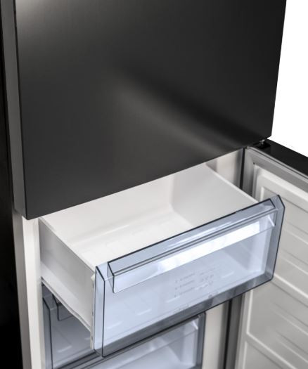 Elegantní celočerné provedení vás osloví, ať už jste milovníkem čistého designu, anebo moderní praktičnosti. Dveře chladničky jsou opatřeny povrchovou úpravou v černém nerezu. Černé jsou také boky chladničky. V horní části dveří chladničky najdete dotykový ovládací panel, díky němuž budete mít vždy přehled.
