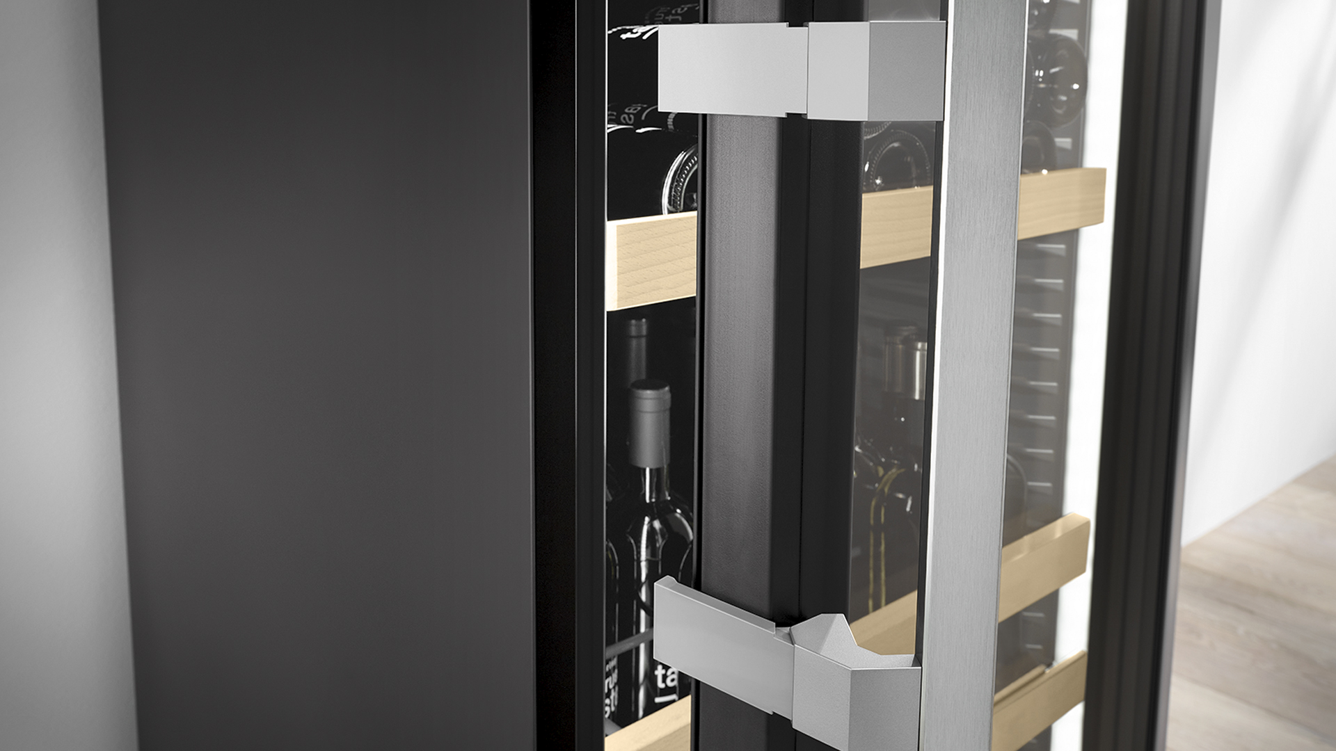 Usnadnění práce. Vkládací pomůcka EasyFill se postará o to, že dveře vinotéky zůstanou od úhlu 90° otevřené, takže láhve se vám budou velmi snadno vkládat. A když dveře otevřete do úhlu menšího než 90°, díky mechanismu samočinného zavírání se samy zavřou – vždy tak jemně, jak si to drahocenná vína žádají.