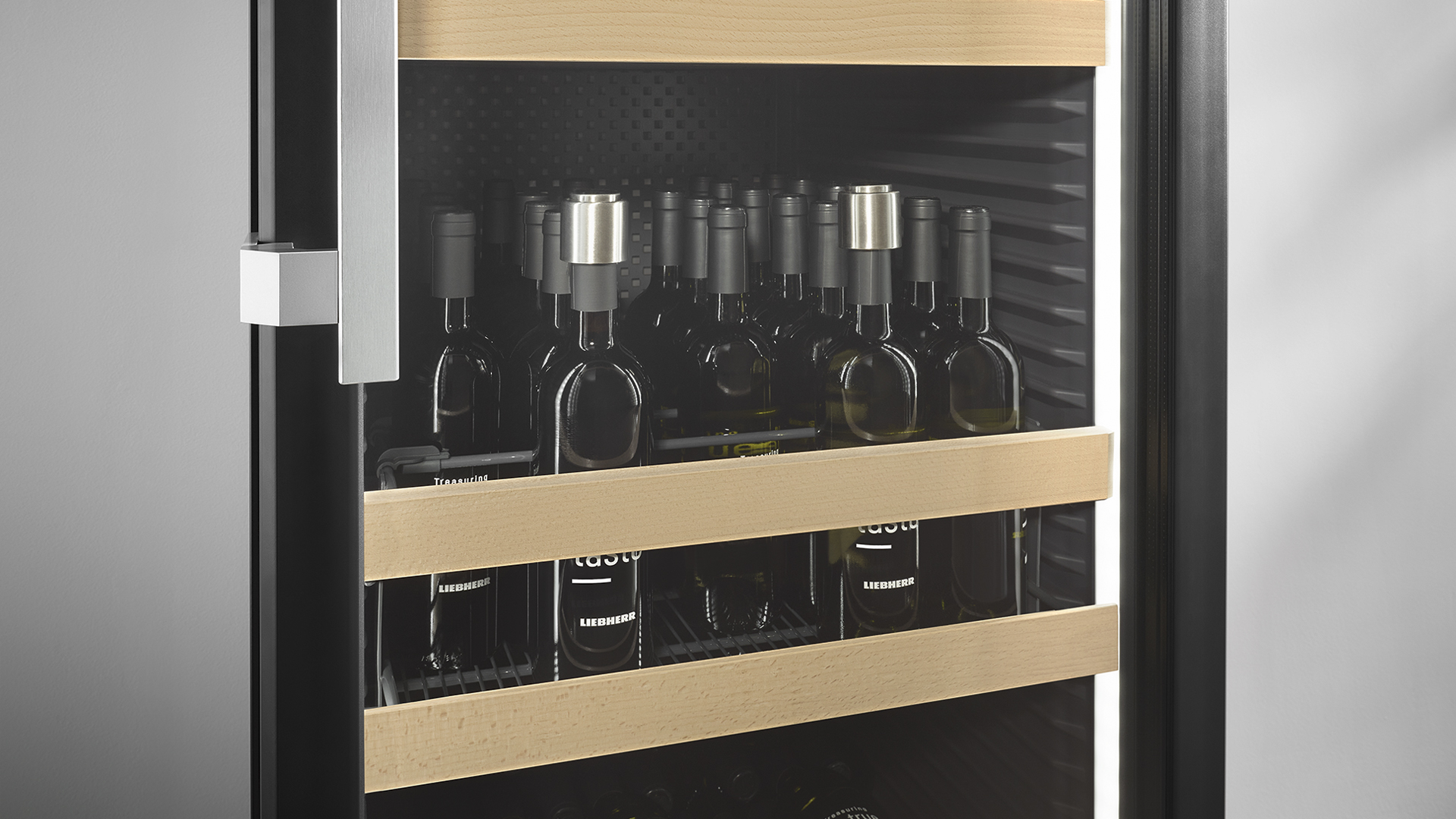 Teplotu a vlhkost lze totiž v této chladničce na víno nastavit individuálně. Vína, která nabízíte, jsou přehledně uložena hrdly k sobě a díky košíku EasyServe jsou vždy po ruce – pro poskytování výjimečných služeb totiž musí být každý pohyb správný.