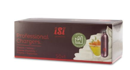 iSi Professional Chargers – 50ks bombiček pro profesionální přípravu šlehačky iSi Professional Chargers jsou vysoce kvalitní bombičky naplněné čistým N₂O (oxid dusný), které jsou navrženy pro profesionální použití při přípravě čerstvé šlehačky, pěn a dalších pokrmů. Každé balení obsahuje 50 bombiček, což zajišťuje efektivní přípravu velkého množství pokrmů. Pro bezpečnost a nejlepší výsledky doporučujeme používat pouze originální bombičky iSi.