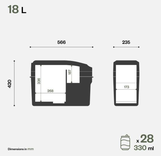 Objem 18 litrů, napájení 12/24V, vnitřní osvětlení, display, digitální ovládání, chlazení -18°C až +10°C, poutání k sedadlu pásem. Ramenní popruh pro přenášení. Podpěťová ochrana autobaterie.