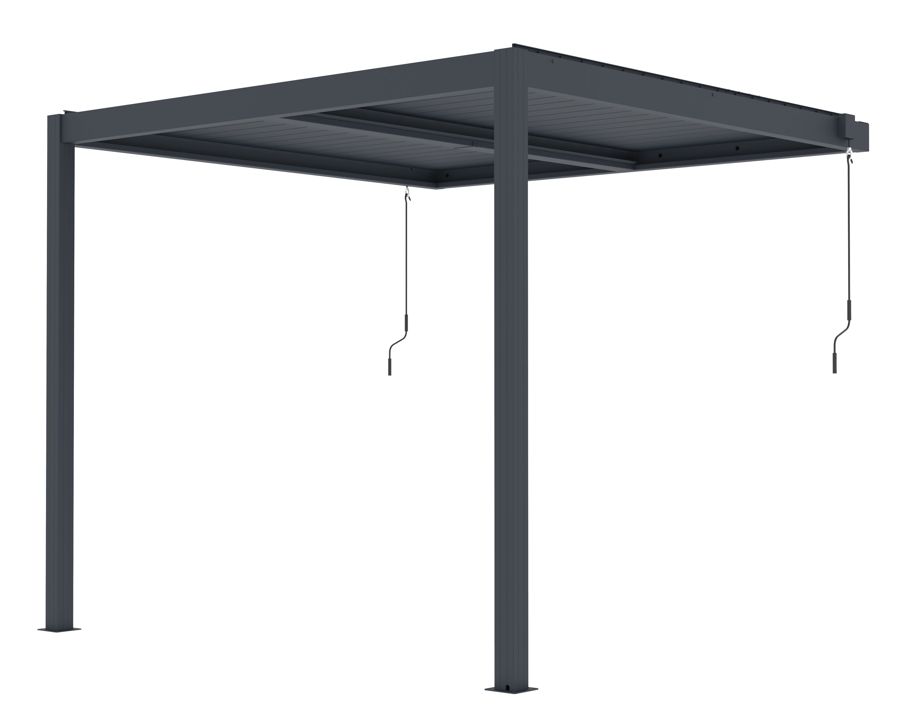 Díky manuálně ovládaným lamelám z pozinkované oceli si snadno nastavíte ideální podmínky podle aktuálního počasí. Rozsah naklopení až 110° umožňuje efektivní cirkulaci vzduchu i spolehlivou ochranu před deštěm nebo slunečním zářením. Pergola tak poskytuje příjemné prostředí během horkých letních dnů i při nepříznivém počasí.