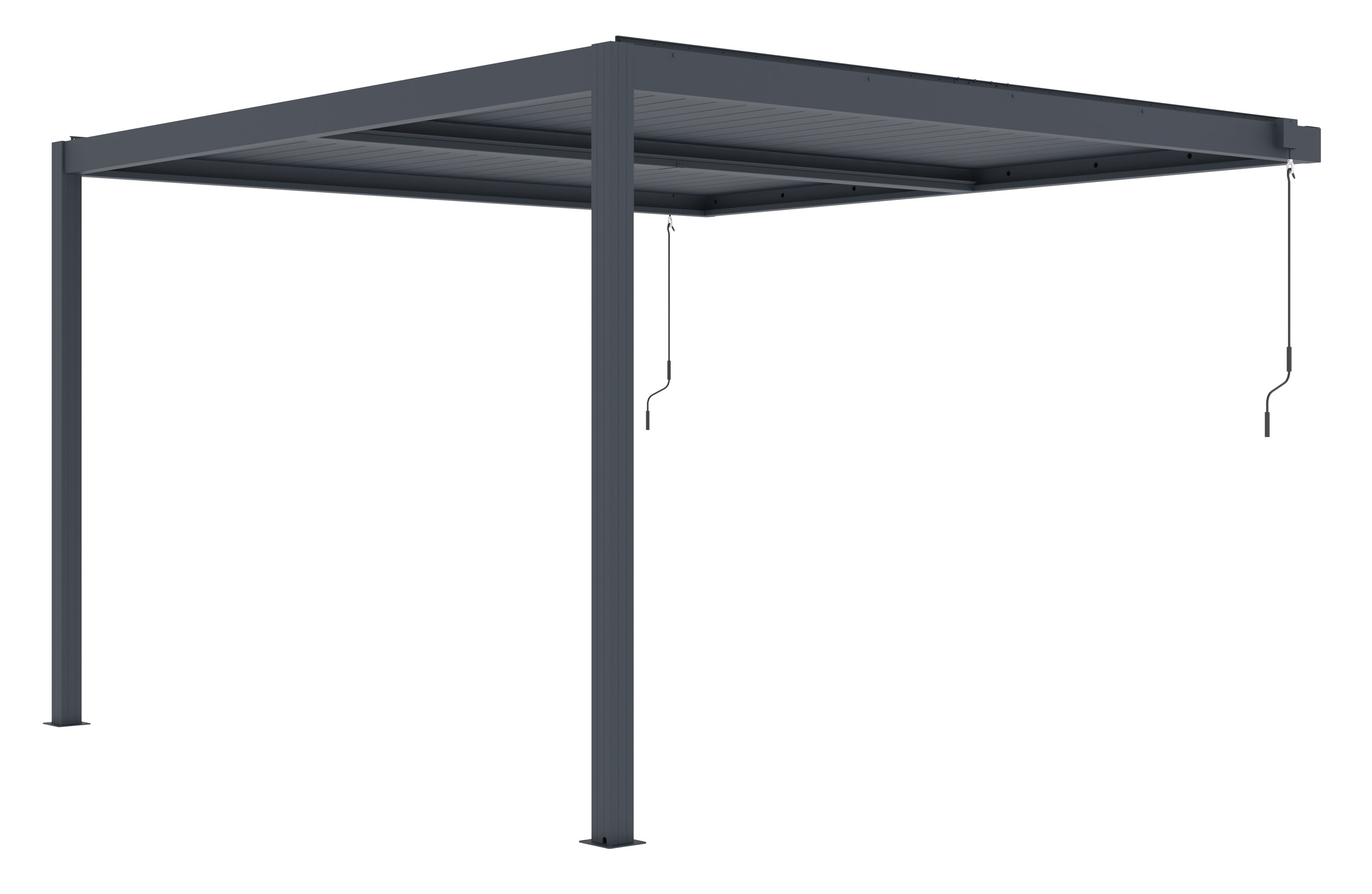Díky manuálně ovládaným lamelám z pozinkované oceli si snadno nastavíte ideální podmínky podle aktuálního počasí. Rozsah naklopení až 110° umožňuje efektivní cirkulaci vzduchu i spolehlivou ochranu před deštěm nebo slunečním zářením. Pergola tak poskytuje příjemné prostředí během horkých letních dnů i při nepříznivém počasí.
