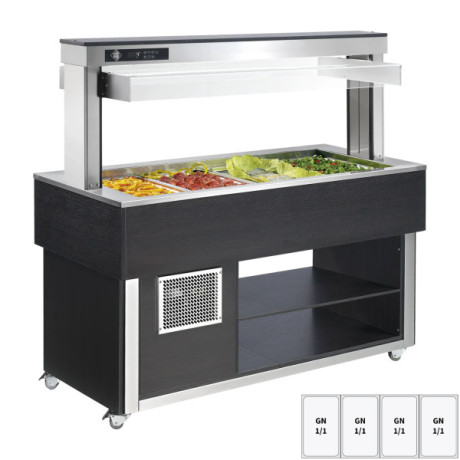 Na úvod » Gastro spotřebiče » Distribuce jídel / gastronádoby » Bufety » Bufet chlazený GN 4-1/1 200mm, Wenge, spodní deska, boky, kolečka, 2x nerez police | RM - TR GREEN +